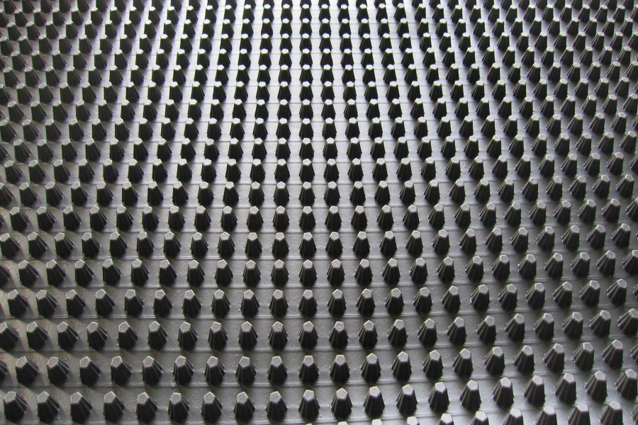 高密度聚乙烯蜂窩式防水板系采用高密度聚乙烯(HDPE)經(jīng)擠出或吹塑法生產(chǎn)形成在高密度聚乙烯膜上壓出封閉突起的半錐狀、柱狀、半球狀殼體,形成的一種膜、殼連續(xù)且具有立體空間和一定空間支撐剛度,液體可以在其內(nèi)流動排泄的板材。